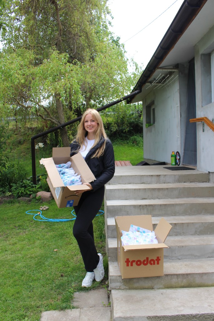 I worked closely with my aunt, who lives in Łas Toczyłowo and works at a nearby hospital. When I traveled to Poland in July, I brought the hygiene kits directly to her home, and she helped distribute them to both children and adults in the surrounding communities.
